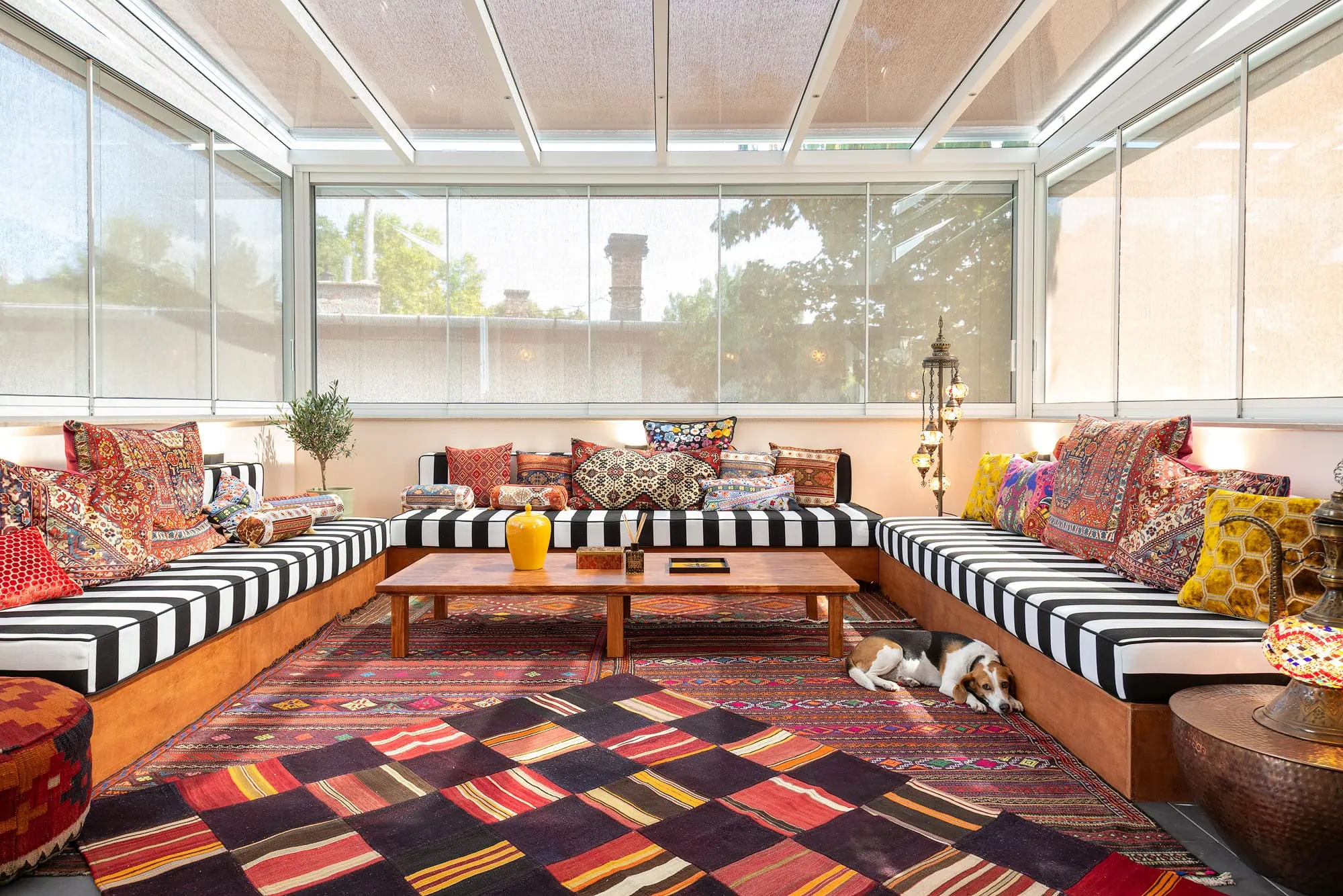 Bár nem hőszigetelt, mint egy ház, a megfelelő előkészületekkel – például egy kis fűtéssel vagy egy tűzteres asztallal – még egy karácsonyi vacsora is kellemesen eltölthető benne!